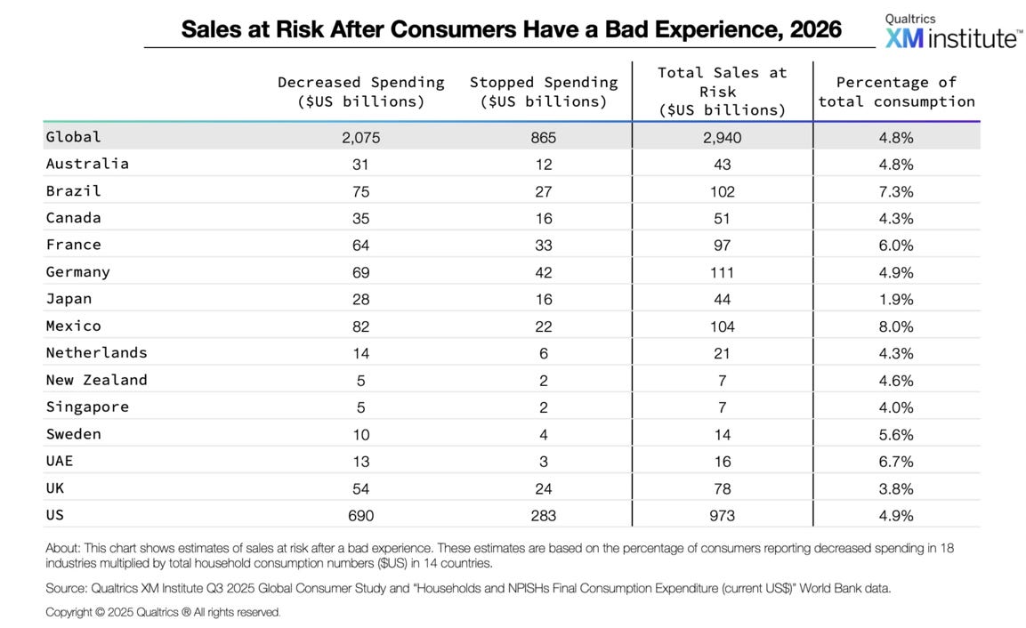 DCX Stat: Organizations globally face up to $2.94 trillion in 2026 revenue at risk because 11% of customer experiences are bad and 47% of those lead to reduced spending.