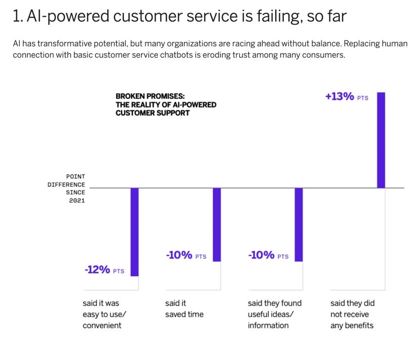 The So What (The Signal): The market is telling you the truth you don’t want to hear: your AI is not a convenience, it’s a trust deficit. When consumers feel AI is neither easier nor faster, you have wasted your investment. The fundamental failure here is one of intent. Too many companies are using AI to replace the human relationship, not support it. This leads directly to the core problem: only 39% of consumers believe organizations use their personal data responsibly. You cannot build a great experience on a foundation of distrust.
