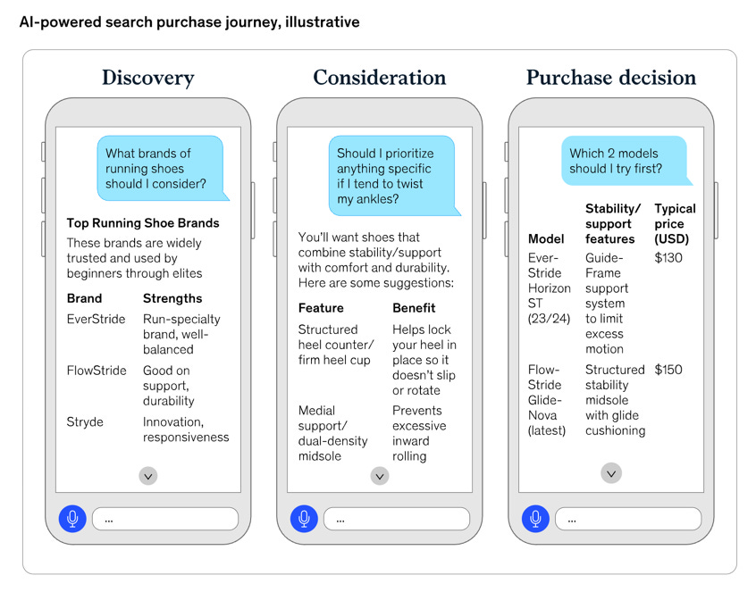 A McKinsey report projects that by 2028, $750 billion in US revenue will be guided by AI-powered search (through tools like Google’s AI Overview and platforms like ChatGPT). Consumers are now seeking out these AI systems to get synthesized, objective answers about the best products and brands. This acceleration is leading to a “zero-click search” phenomenon, where customers get all the information they need to form conviction without ever visiting a brand’s website.