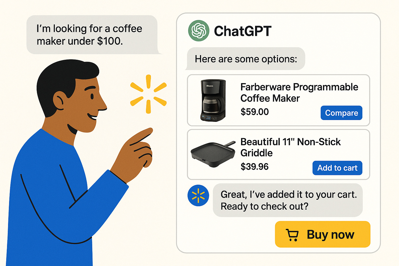5️⃣ ChatGPT shopping gets real with Walmart’s instant checkout integration