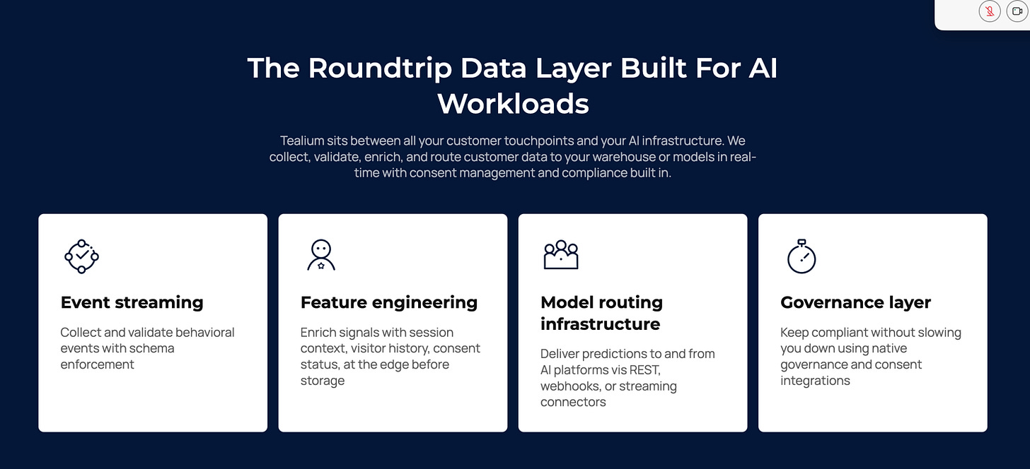 What it does: Helps unify customer signals (web, app, CRM, service interactions) and route them in real time with governance controls, so AI experiences can use context without turning into a privacy or compliance mess.