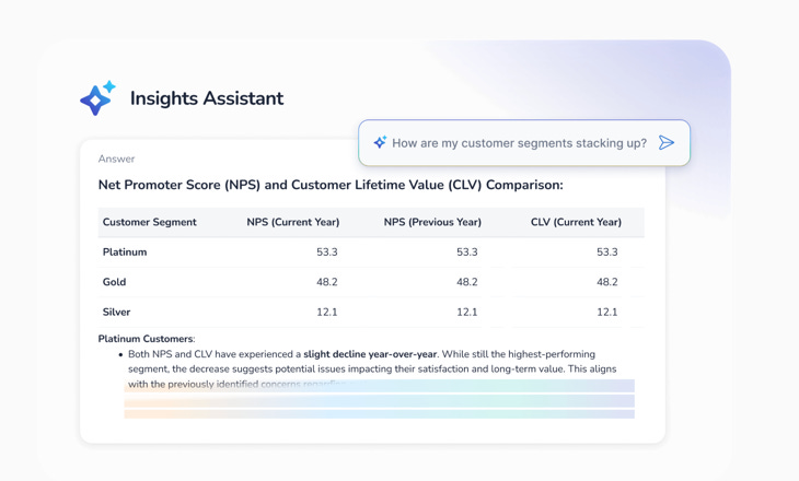 It lets people ask simple questions about customer feedback (like “What are customers mad about this week?”) and helps find themes automatically, with humans reviewing the results.